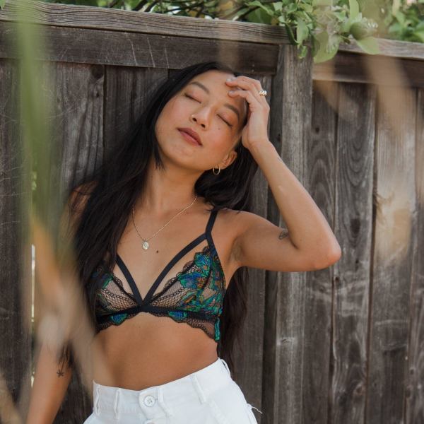 If there is any bralette you would want to show off, it’s the Paradiso Triangle Bralette. This style combines semi-sheer lace, vibrant colors, and a variety of strappy cutouts. Available in standard and petite sizing, wear it under a thin, half-buttoned shirt to show it off on the streets of Milan or out to dinner in New York City.